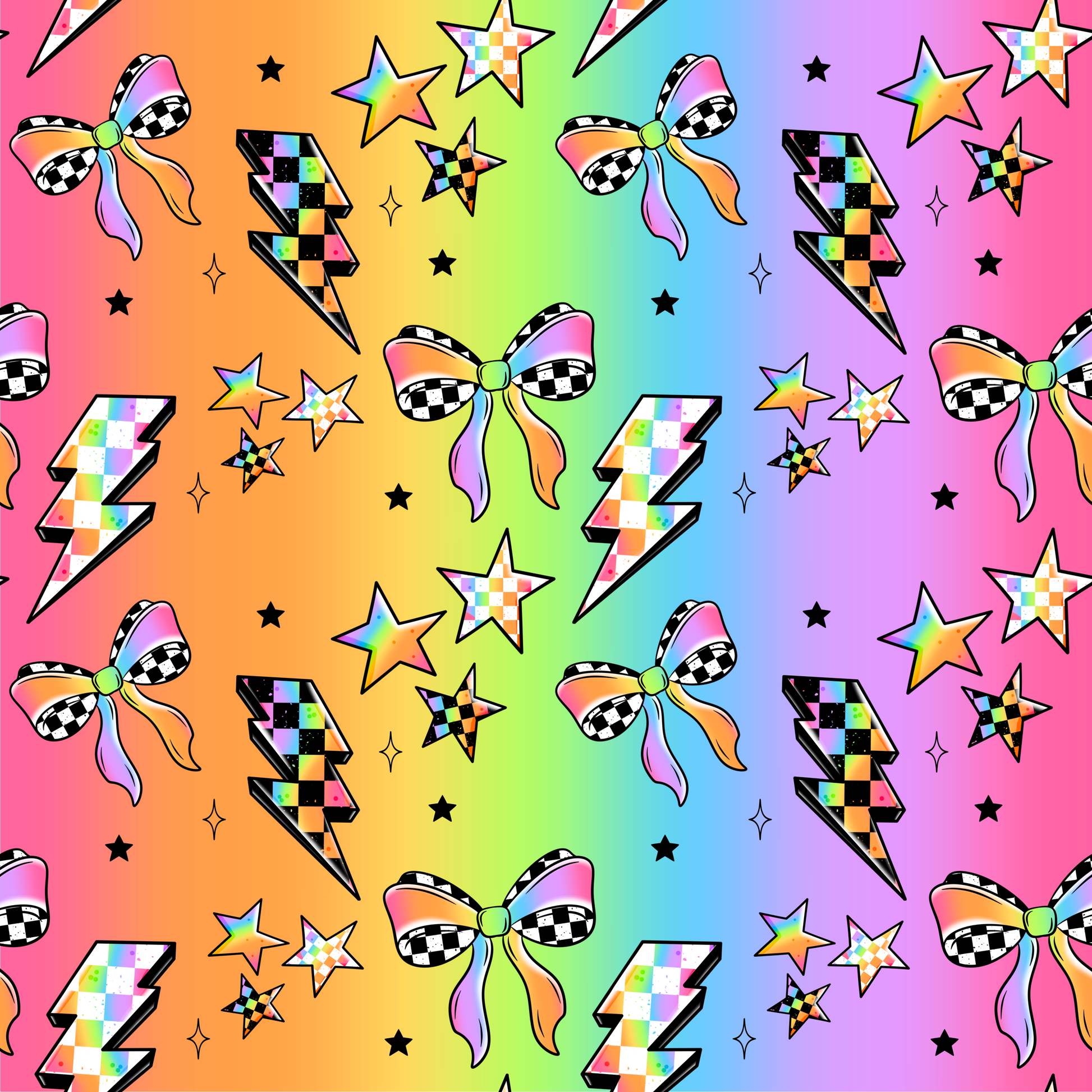 RAINBOW CHECKER BOWS, LIGHTENING &STARS (TALL) RETAIL